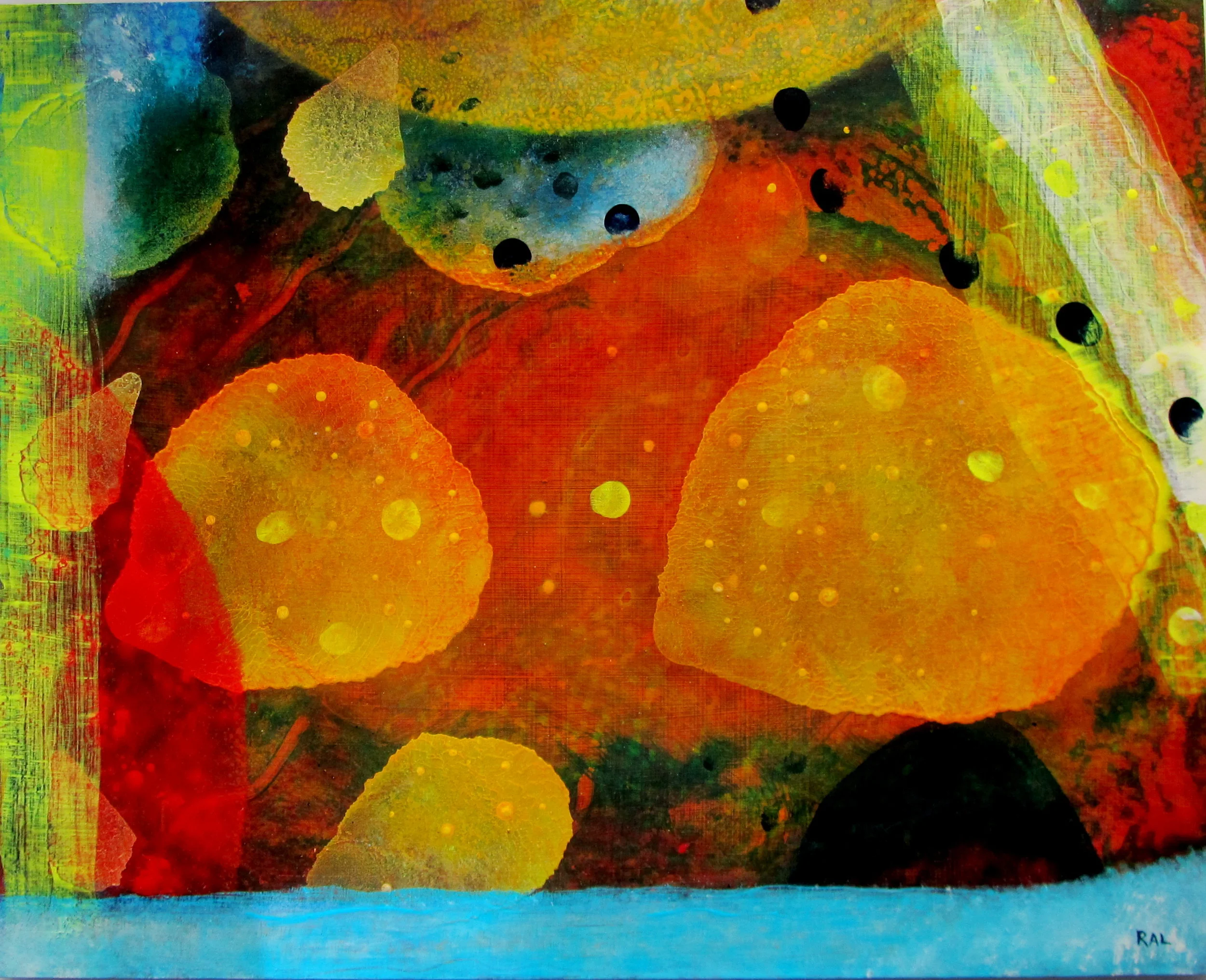 Lees’ paintings are spontaneous, colorful, yet deep, abstract expressions reflecting his interest in the merging of contemporary scientific theories with mystical and metaphysical views. His content expresses his vision of space, cellular matter, energy, transformation and other dimensions.
